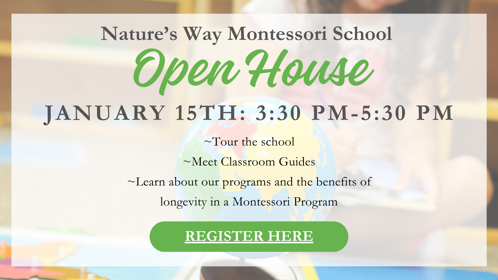 Nature’s Way is located in Northeast Knoxville on seven beautiful wooded acres bordered by farmland. The campus consists of three buildings, a large outdoor area that provides opportunity for varied educational and recreation activities, an extensive Nature Preserve which includes marked environmental points of interest, and wooded areas accessible to students for play. The school opened in 1982 with twenty preschool children and since then has grown to serve approximately 160 students each year through the 8th grade. Each of our eight multi-aged communities is guided by a Montessori certified lead guide. Our programs follow Dr. Maria Montessori’s educational philosophy and continuum through a carefully prepared environment, informed observation of the child’s social, emotional & cognitive growth, and work that is engaging, challenging, and satisfying to the child. Please spend some time familiarizing yourself with our programs and our mission as presented on this website. We hope you find our site helpful in learning more about Montessori Education and specifically about Nature’s Way. We would enjoy speaking with you about your child(ren) and your family’s educational goals. Come and visit! We would love to share our classrooms and grounds with you.