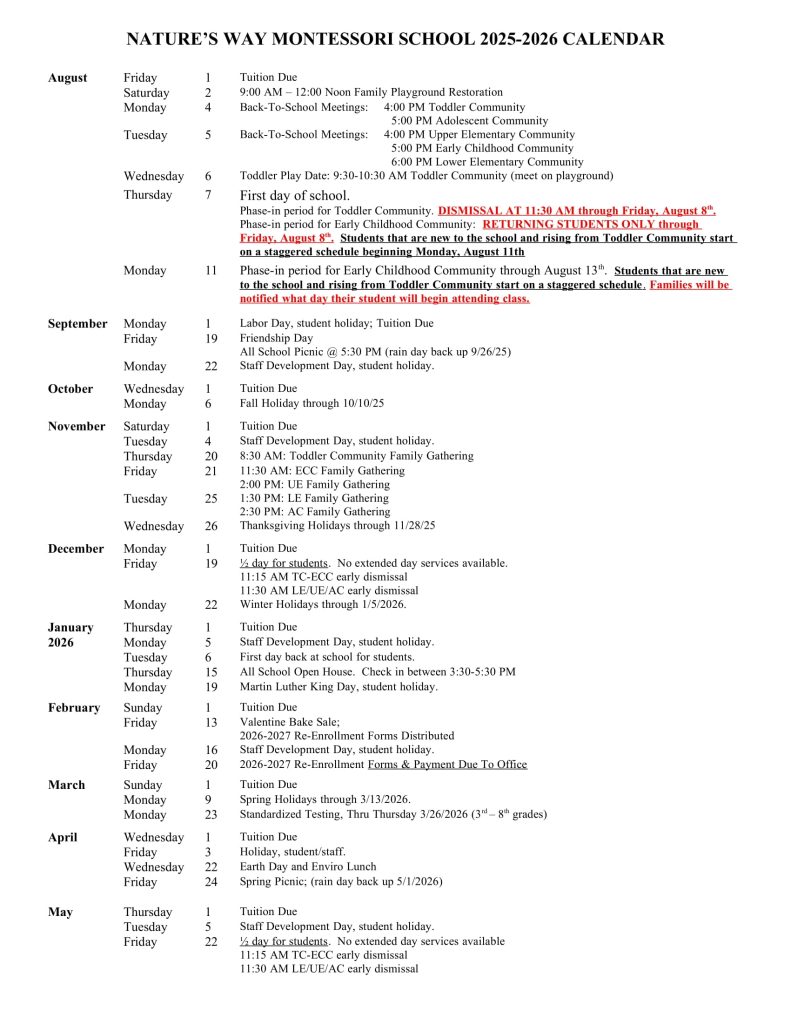 25-26 School Calendar